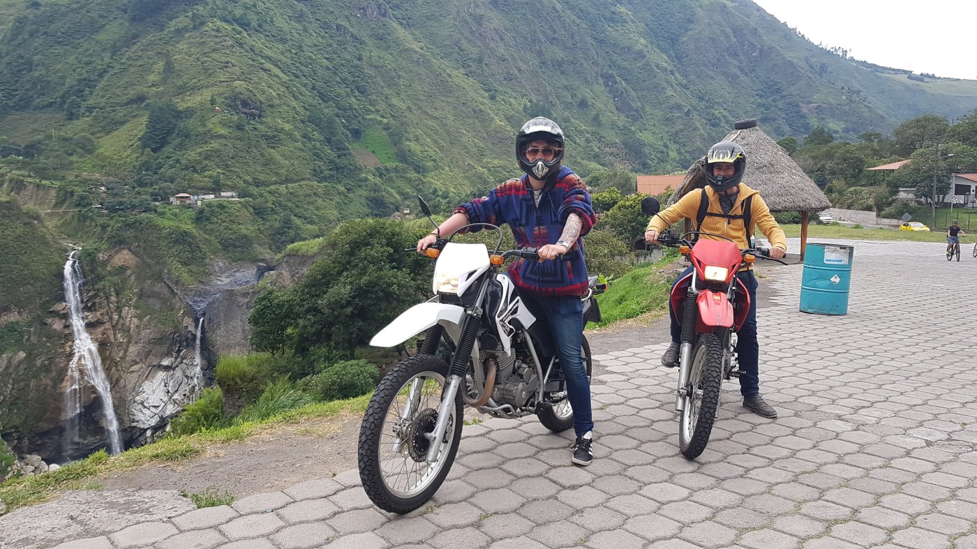 Avid readers (lol) will know I like to hire a motorbike every now and again. So, after seeing the tours we can take to the mirador a few thousand feet up, we decide to do it our way. Rather than paying out of our asses for busses and shabby tour food, we hire two motorbikes for a few hours and decide to go it alone. Despite the shop owner speculating that we won’t have road or health insurance because “it’s optional in Ecuador”. This time we get 250cc bikes, small engines in the grand scheme of things, but a little bigger than the 50cc we both had at 16… After I’m told off by the shop owner for changing gear too harshly, we set off. Once again, the views were stunning. Ecuador and so far, South America, hasn’t failed to provide tons of spectacular landscapes.