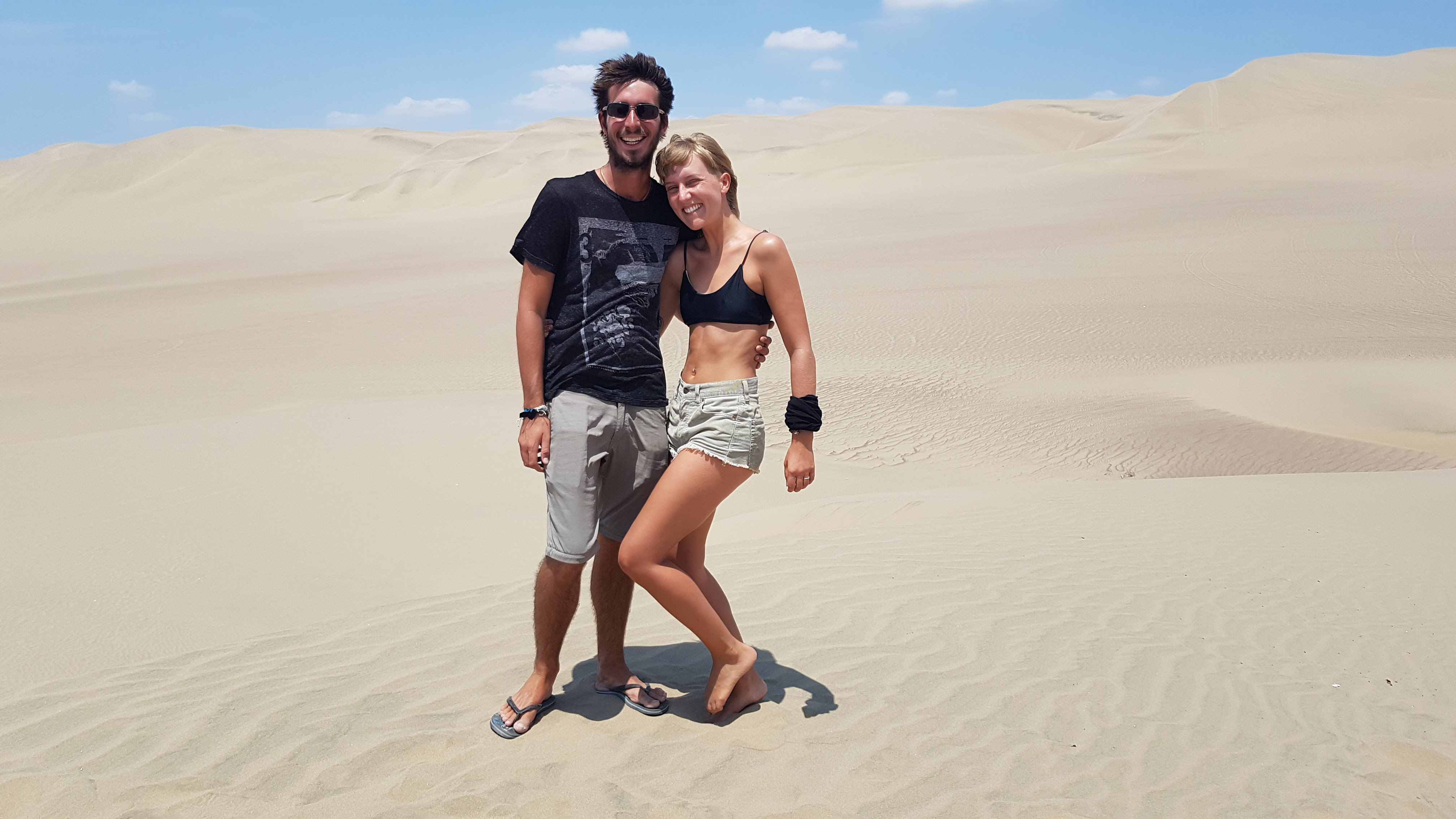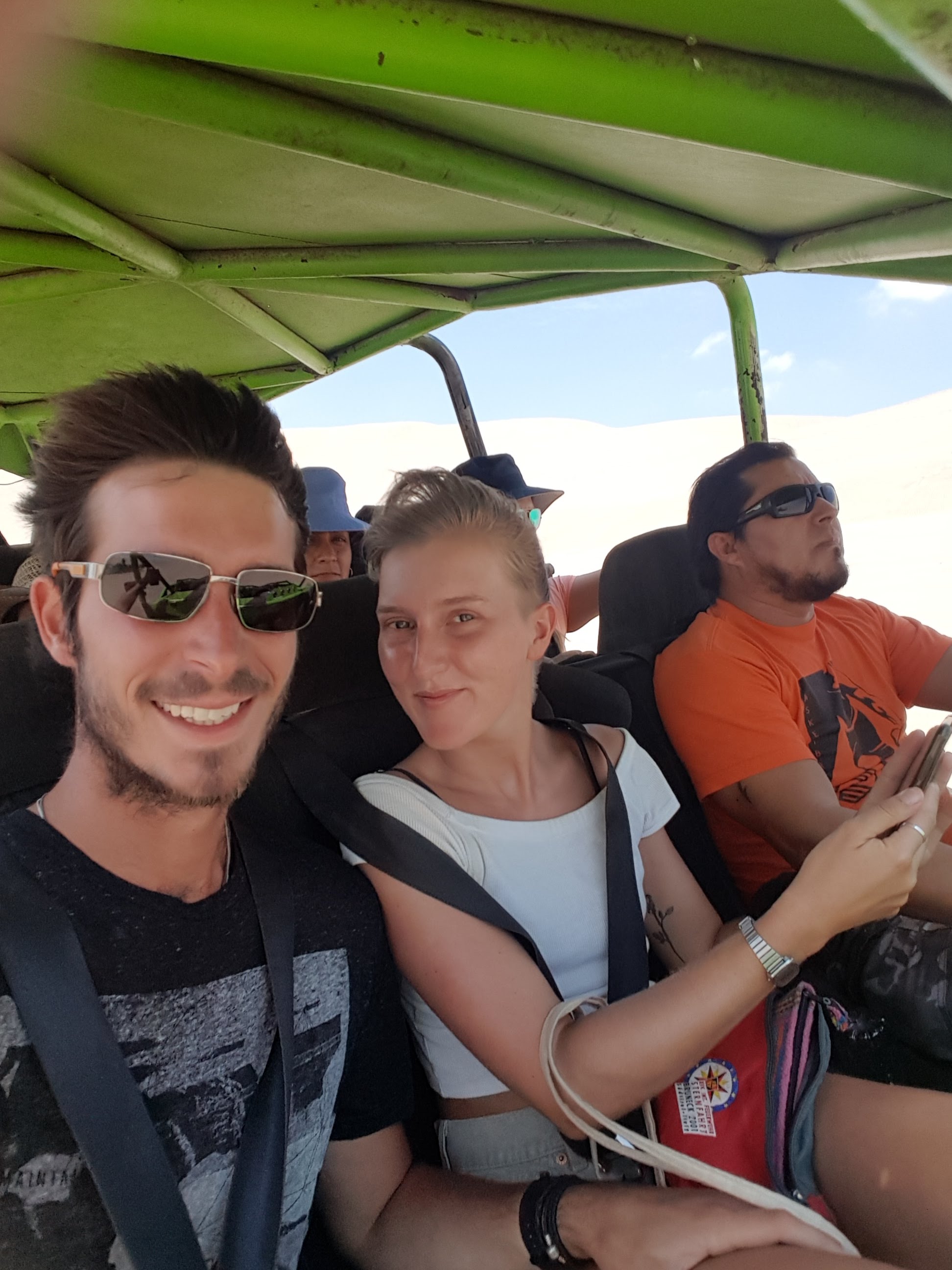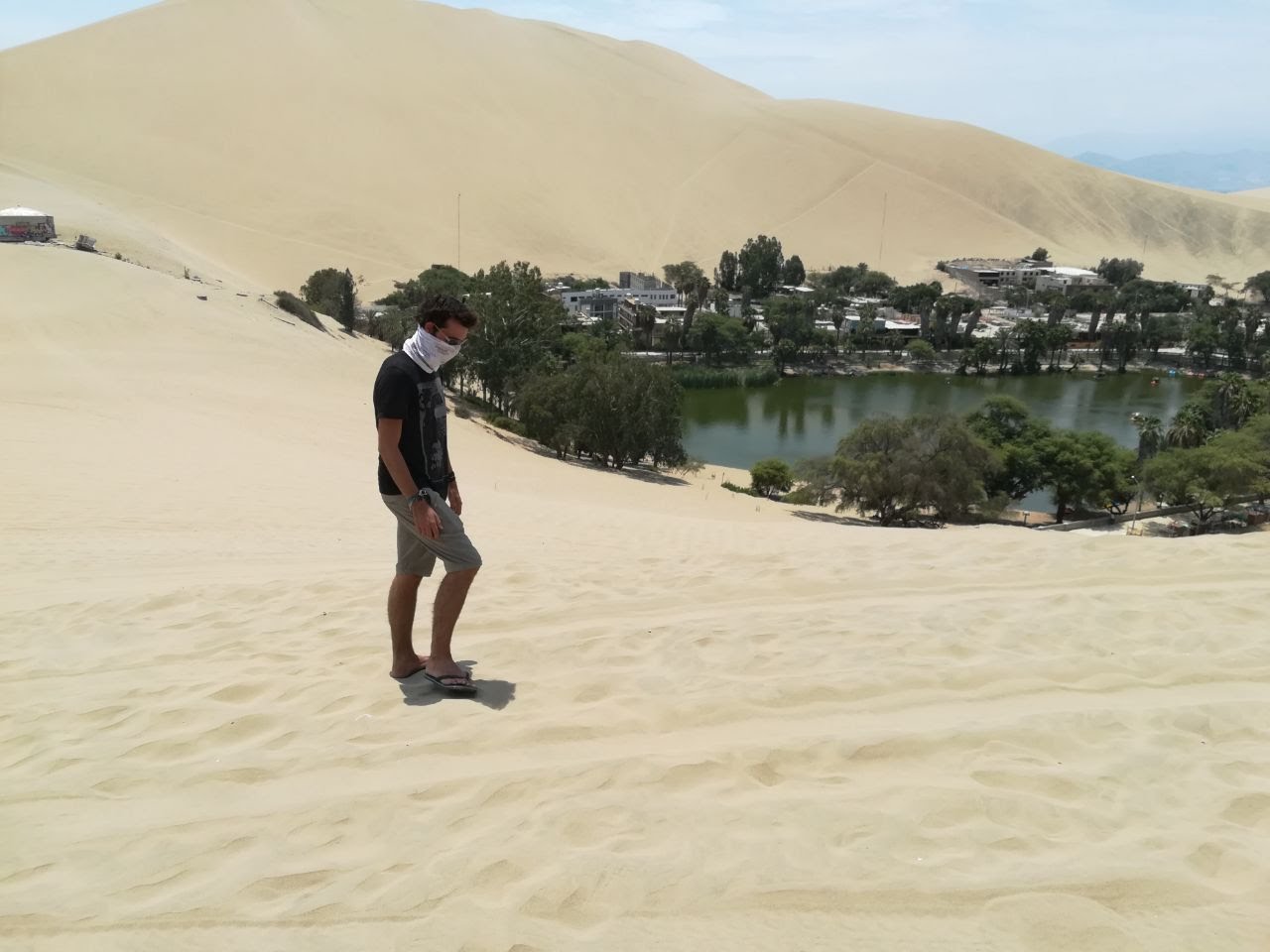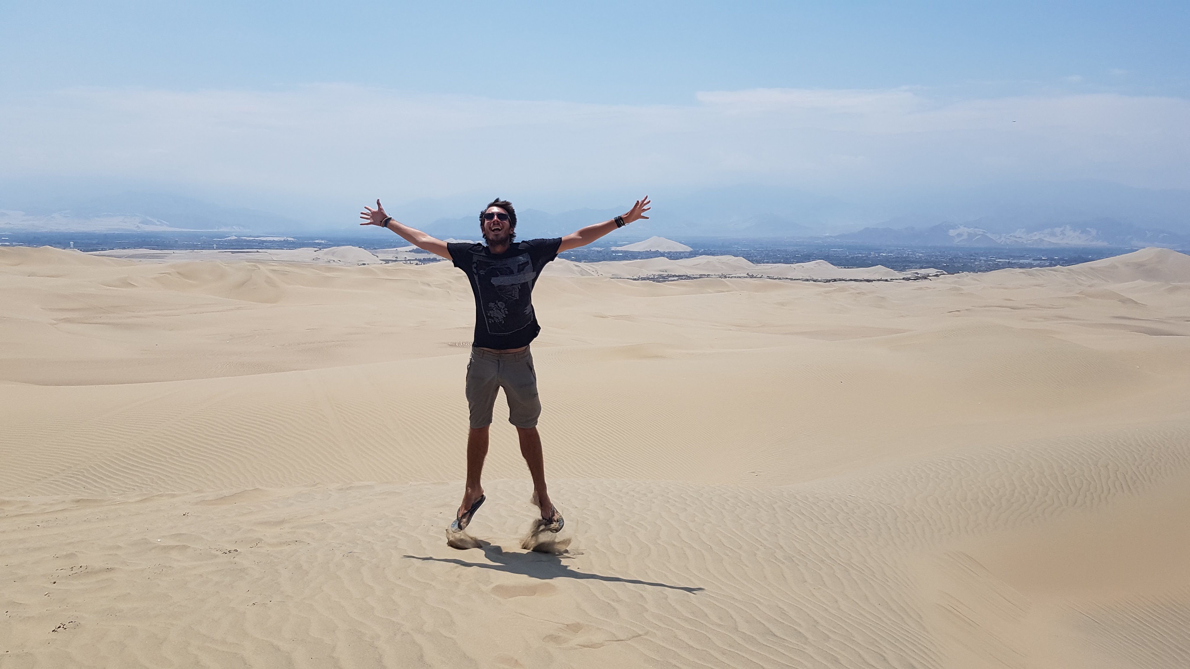 - Sandboarding and beach-buggying with Ceci – Very close to Paracas is a little gem of a town called Huacachina, which, is famous for it’s lagoon and surrounding dessert. In said dessert, one of the attractions of the town is to tour in a sand-buggy and slide your way down a sand dune on a sand-board. Now, this is super fun until you fall off. The sand is bloody hot, as you can probably imagine.