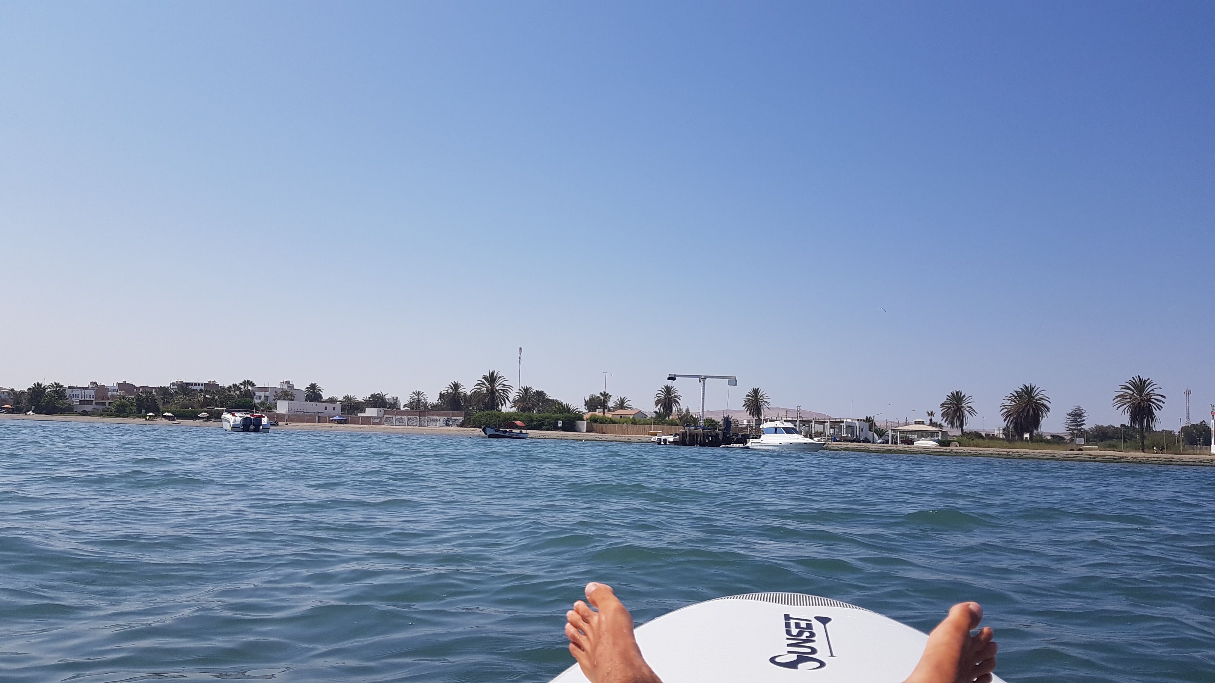 - Trying paddle boarding for the first time. Each morning I’m awake in time, I see Emma from work take a huge paddle board to the sea. It looks very peaceful. I like the idea of being able to stand on the sea and take in my surroundings, without distraction and noise from the beach. So, one day, I give it a go. I’m told to hit the coast at around 7am, before other boats start to disturb the calmness. Off I go. I struggle. Navigating a board of this size is harder than it looks! Every time I paddle to the left or the right, even if a gentle stroke, I seem to move a mile. For a period, I even had to get on my knees to ensure I didn’t lose my balance and go over. I thought it would be a good idea to bring out my phone so I could take pictures. So falling off simply wasn’t an option. After about 30 minutes of struggling and a few near misses, I headed back to the beach. How did people enjoy this? Even on a calm morning this thing is almost impossible to steer. Sometimes it got so bad that I would do a 360 and there was nothing I could do to stop it! Only when I got off the board did I make a rather significant discovery. Any guesses? I had the board the wrong way around. The little underside-fin which helps with navigation was wrongly at the front of the board instead of the back. Wow, not my brightest moment.