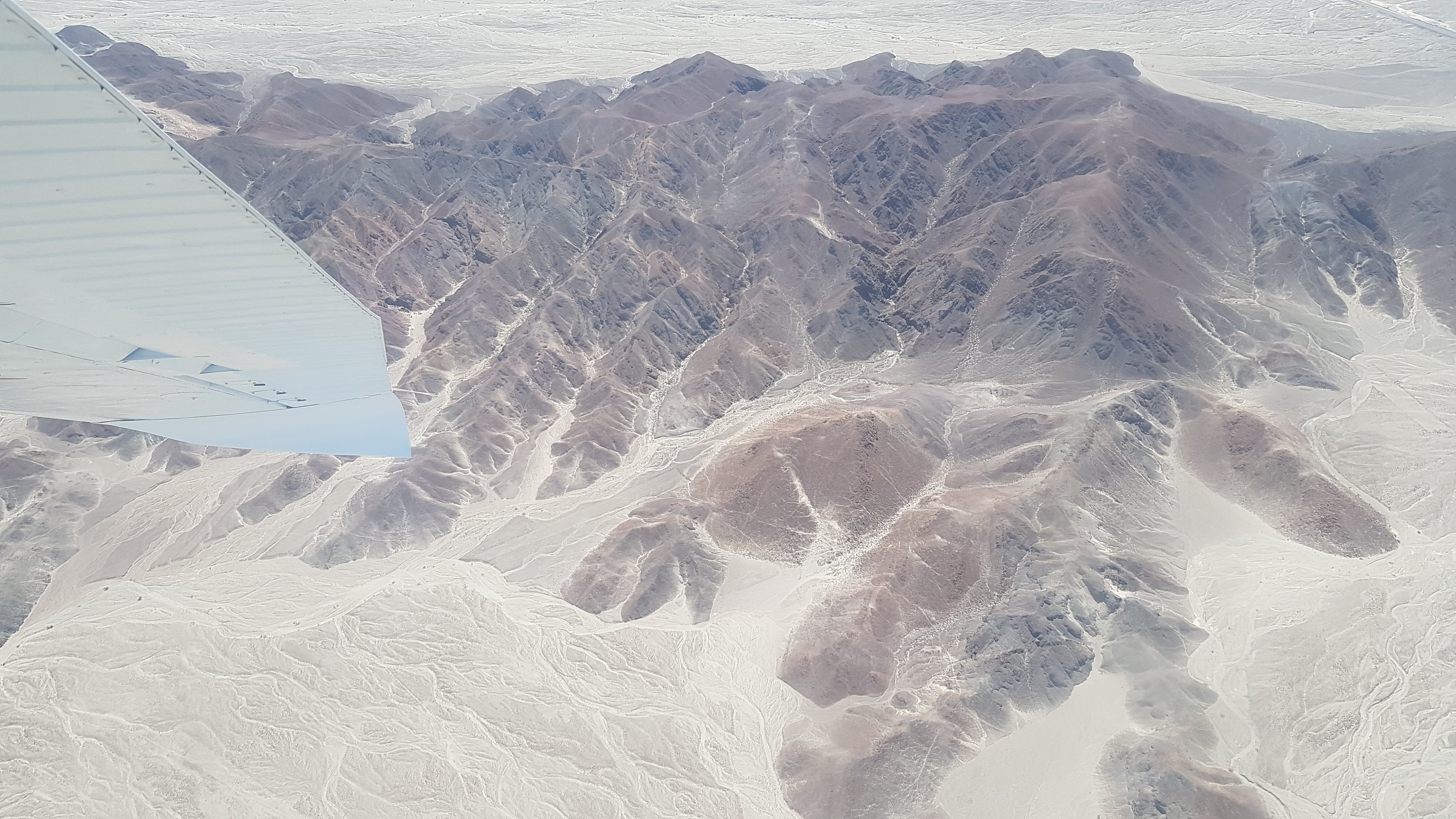 “The Nazca Lines in southern Peru are a group of pre-Columbian geoglyphs etched into desert sands. Covering an area of nearly 1,000 sq. kilometers, there are about 300 different figures, including animals and plants. Composed of over 10,000 lines, some of which measure 30 meters wide and stretch more than 9 kilometers, the figures are most visible from the air or nearby hilltops. The combined length of all the lines is over 1,300 km (808 mi), and the group cover an area of about 50 sq km (19 sq mi).” Obviously, I had to see them!