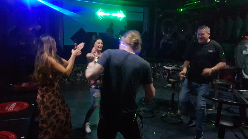 This special night also gave us another highlight. Alan, my mums partner, burst into life like an overcharged duracell once he’d had a few. He danced all night long, and his moves weren’t that bad. At one point, he even ventured onto the stage. Wanting to back him up (feeling sorry for him), I joined him for a brief moment or two, before the embarrassment was just too much.