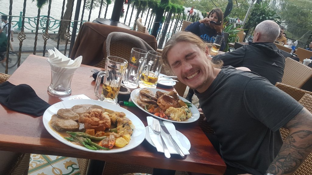 Meeting Alex at the airport was quite emotional and very, very exciting. But first, the 14 hour journey from Manchester to Hanoi, Vietnam. The notable event here was the plane journey from the stopover, Prague, through to Hanoi. It was the first time I have been surrounded by Vietnamese people; taking in their language and communication style, seeing the way they interact with one another, the way they dress and how their physical builds are typically smaller than us Westerners. The notable event being the Vietnamese passenger sat in front of me on the plane who awkwardly yet sweetly turned around and made small-talk with me. His level of English was very basic, but I admired him for being brave enough to try. After some awkward question and answers, eventually, he offered me his number and address and asked me to come to his city some hundreds of kilometres south of Hanoi so he could show me his home and introduce me to the food of Vietnam and his region. I was quite flattered, what a first impression of Vietnamese people, before I’d even arrived into Asia.