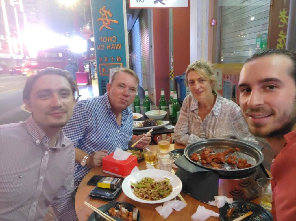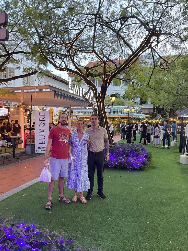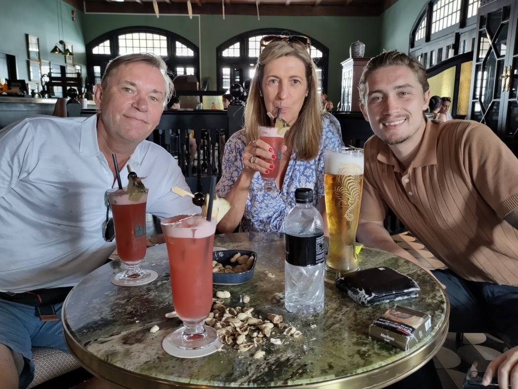We drank the famous Singaporian sling (which by the way has a cool backstory) in The Raffles hotel (visited by none other than the recently late Queen Elizabeth II). As we were entering, Alex noticed a woman on a table who was dropping peanut shells on the floor. Alex, shocked, dropped her a look of disapproval and mouthed “disgusting” to her. Only when we fully entered the bar did we see that there were peanut shells all over the floor. We later discovered it was part of the experience: