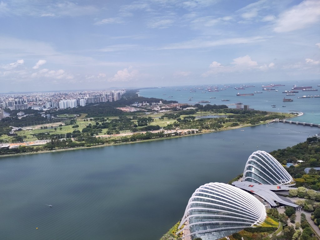 It’s also quite a beautiful city when you look at it with perspective. One can visit the SkyPark Observation Deck (the 3 towers with a boat on top) for a couple of pennies (£25) and wow, it is impressive. You can see how the city intersects with the ocean, and the outrageously big shipping port.