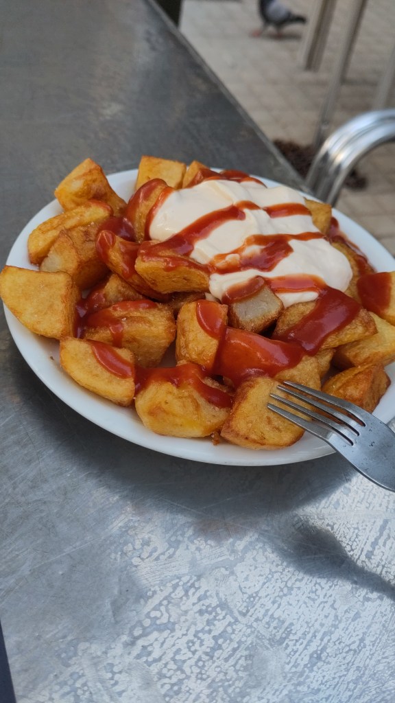I sat down on a table outside, it was a nice enough day and this way I could watch from afar. I asked for a beer, it came. I asked for some potatos bravas, they came.