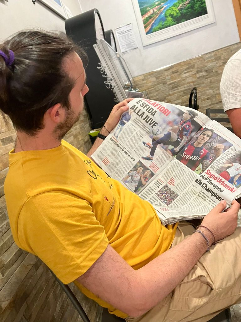 I arrived at Bologna airport first, having flown from Barcelona on a rather early, 7am flight. I sat down in the arrivals lounge, drinking my first Italian coffee and croissant – the calm before the storm. Before long, Zac, Keeton, Littler and Gibbo waltzed through arrivals trying to hide their excitement. Thankfully, there was no drama on their flight. Apart from Keeton breaking the rear seat window in Zac’s new car on the way to the airport, everything had gone smoothly.