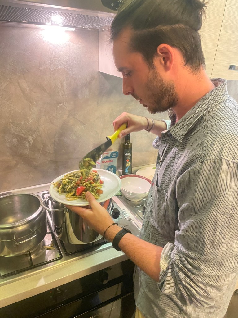 - Cooking a delicious pesto pasta dinner with Zac’s signature garlic bread